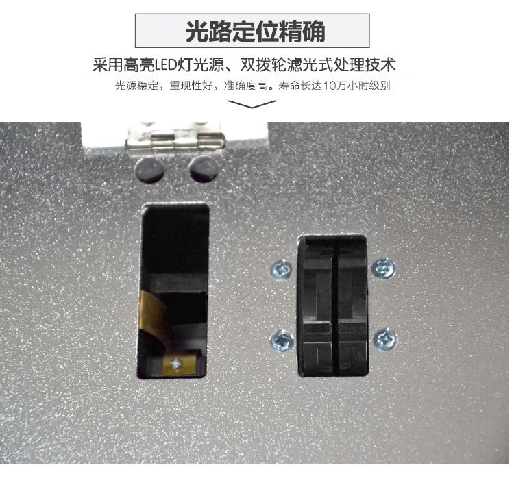 采用高光引导光源和双轮滤波处理技术,确保光源波长稳定,硅半导体作为信号接收系统,寿命10万小时。光源稳定、重现性好、准确。