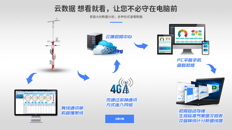 实时监测气象参数,例如风速、风向、降雨、温度、湿度、空气压力、太阳辐射、土壤温度、土壤湿度和其他个要素。